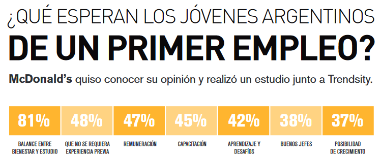 En el marco del lanzamiento de la campaña de la marca, “Creemos en los Jóvenes”, que busca reflejar la confianza de McDonald’s en las nuevas generaciones y las posibilidades que les brinda para ingresar al mercado laboral formal, la empresa realizó un estudio entre los jóvenes argentinos. Junto a la consultora de investigación de mercado Trendsity, buscó detectar cuál es la percepción que los jóvenes tienen sobre su generación y qué consideran que la sociedad piensa de ellos en Argentina.