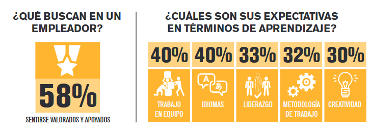 Además, el estudio percibe que la mayoría (82%) de jóvenes esperan que las instituciones educativas se involucren más a la hora de ayudarlos a buscar un primer empleo y casi la totalidad (89%) de los encuestados se queja ante la paradoja que se les plantea al buscar su “primer empleo” en el cual uno de los requisitos suele ser la experiencia.