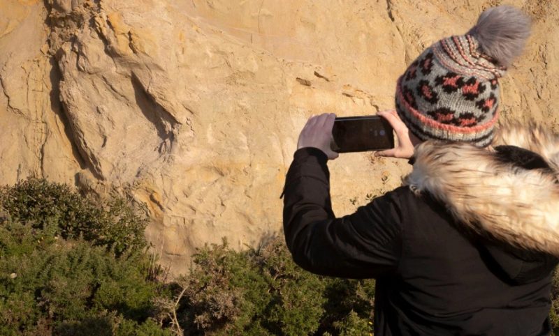 La figura quedó expuesta entre las duras formaciones luego de que la turista Patricia Golding tomara una foto del acantilado y notara algo raro. Tras ver que sobresalían extrañas marcas, la joven decidió investigar de qué se trataba y envió la imagen a la Universidad de Southampton.