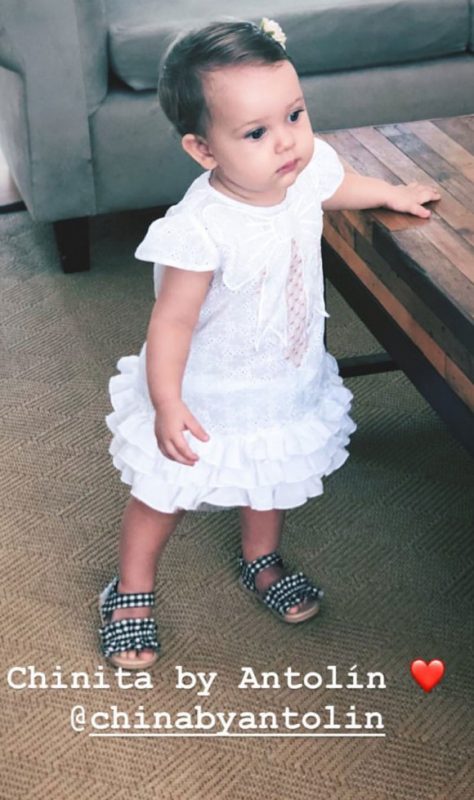 Además, publicó una foto del look de cumpleaños de Magnolia, que lució divina con un vestido blanco con volados y sandalias a cuadros.