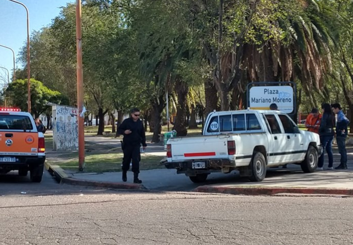Debido al fuerte choque, uno de los vehículo terminó sobre la vereda de la plaza Mariano Moreno.