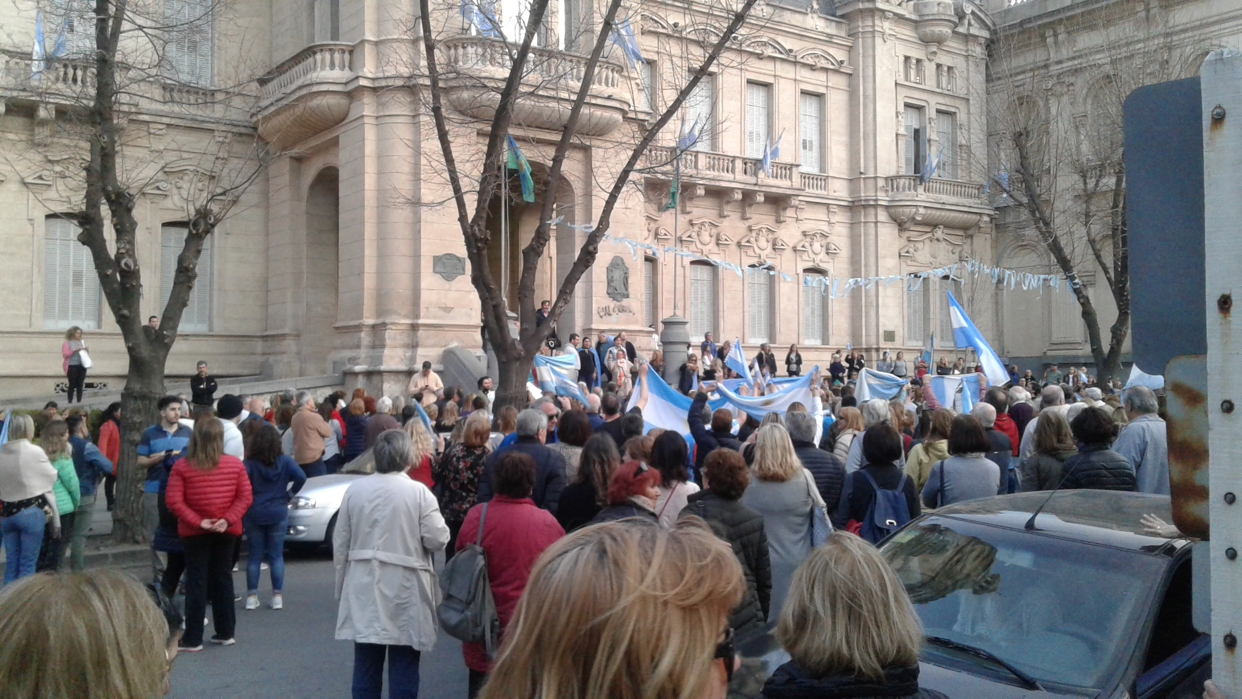 Vecinos de la ciudad se reunieron esta tarde frente al Palacio comunal para brindar su apoyo a las políticas del oficialismo, luego de la derrota que sufrieron Mauricio Macri y María Eugenia Vidal en las primarias del 11 de agosto.