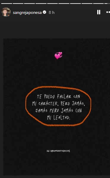 “Te puedo fallar con mi carácter, pero jamás, jamás, pero jamás con mi lealtad”, dice el mensaje que la China publicó en su perfil oficial. Además, le sumó un emoji con dos corazones de color rosa.