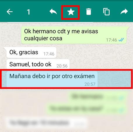 En cualquier chat (de a dos o en los grupales) hay que hacer una presión prolongada en el mensaje que se desea destacar. Entonces aparece un menú de opciones en el sector superior, en el que podés encontrar una estrella. Tocándola, el contenido seleccionado viajará directamente a los mensajes destacados de WhatsApp, y quedará marcado con una pequeña estrella.
