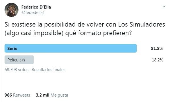 En una encuesta de Twitter lanzada por D’Elía sobre las preferencias de los usuarios, la mayoría se manifestó a favor de continuar con la serie en vez de lanzar una película.