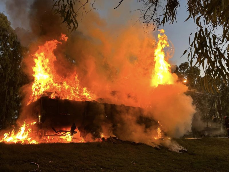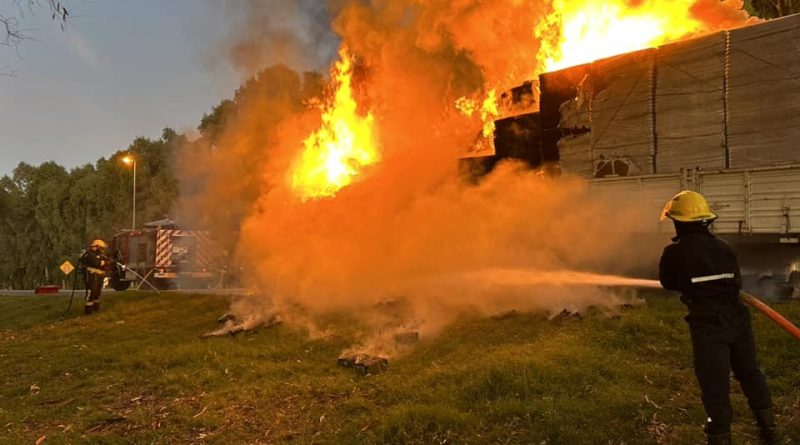 Según publicó el sitio Villarino Informa, el siniestro se produjo cuando explotó una cubierta del acoplado del transporte.