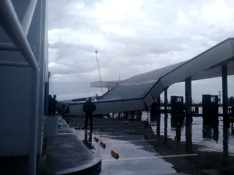 El fuerte viento y la lluvia torrencial que se desató, este lunes por la mañana, provocó un grave incidente en una estación de servicio ubicada en el kilómetro 105 de la Autovía Artigas, cerca de Colonia Elia, en la provincia de Entre Ríos.