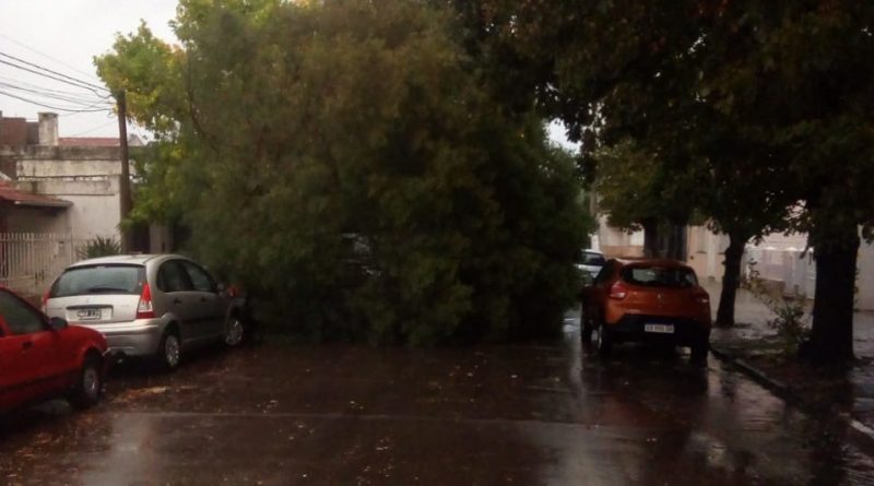 Un árbol que cayó por el intenso viento que se registraba en Bahía Banca provocó daños en un vehículo que estaba estacionado en Berutti al 900.