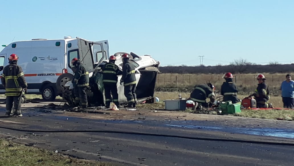 Un tremendo accidente de tránsito se registró, este mediodía, sobre la ruta 22 entre La Adela y Bahía Blanca, a unos 30 kilómetros de Río Colorado.