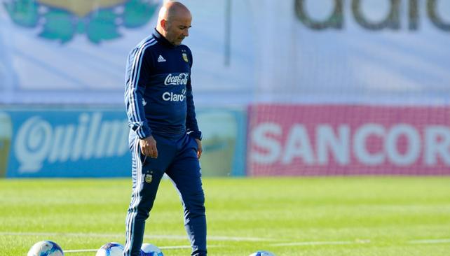 Mientras el resto del plantel realizaba trabajos tácticos en la primera práctica post 0-0 ante el equipo dirigido por Ricardo Gareca, Sampaoli y Mascherano hablaban de cuestiones futbolísticas en medio de la cancha dos del predio de AFA.