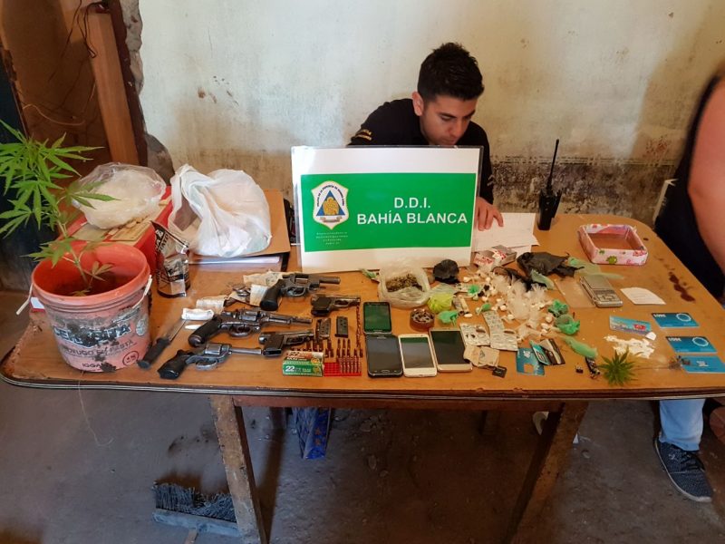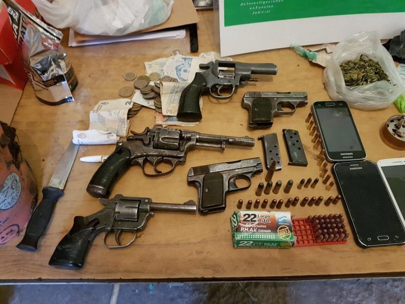 Posteriormente, no sólo se incautó lo ya mencionado, sino tamién se procedió a allanar su hogar donde se encontraba su mujer Diana Sopranzetti de 18 años, y se secuestrarpm 4 celulaares, 3 revolveres (calibre .22 calibre.32 ), 2 pistolas calibre .635 junto a 70 municiones de esos calibres, y un pasamontañas. A raiz de esto se dio intervencion inmediata a la UFIJ 19 a/c del Dr. Jorge Viego, que impartió las directivas pertienentes quedando a su disposicion lo incautado y detenidos los dos mayores implicados, mientras que los menores fueron demorados.