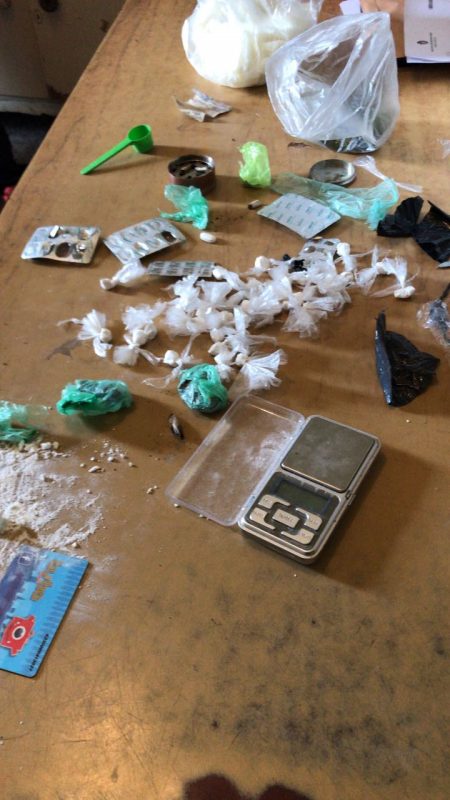 En la noche de hoy, se procedió a allanar esta finca ubicada al lado de una cancha de futbol 5, en la que estaban los dos menores de edad postriormente detenidos custodiando el ingreso al lugar, mientras en el interior se encontraba Abel Martinez de 22 años, que gozaba e libertad asistida por pulsera electrónica monitoreada, fraccionado cocaina sobre una mesa en 37 “bochas” de 1 gramo, mientras estiraba esta sustancia con blister de medicamentos, y contaba con balanza de precision , dinero en efectivo y 25 gramos de marihuana.