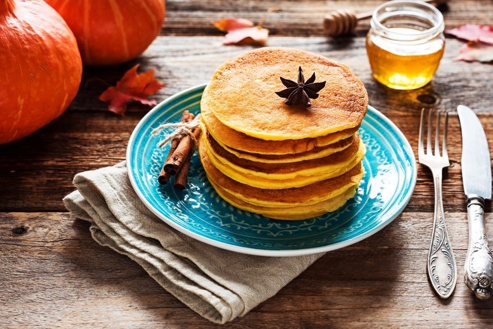 Mezclar los ingredientes, hasta que la mezcla luzca como una pintura espesa. Calentar una sartén, engrasarla con aceite en spray y volcar una cucharada de la preparación. Cuando tome forma y color, dar vuelta la masa.