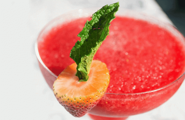 Verter la bebida colada y adornar con frutillas. Como cualquier cóctel, estos “tragos sin alcohol” deben servirse muy fríos para disfrutar su sabor.