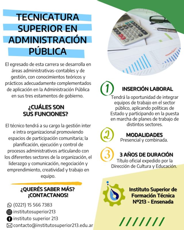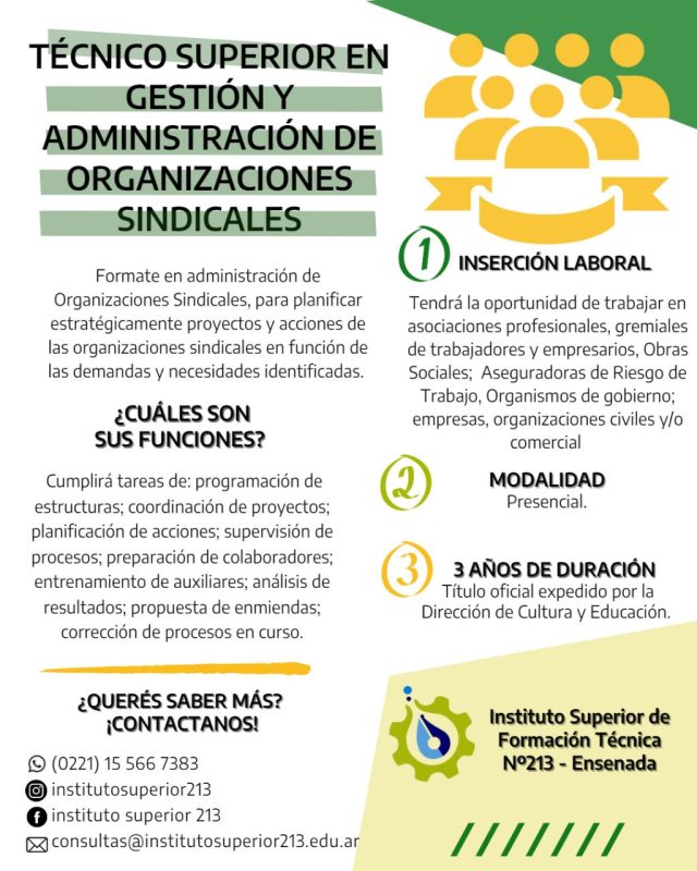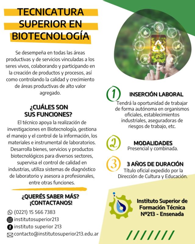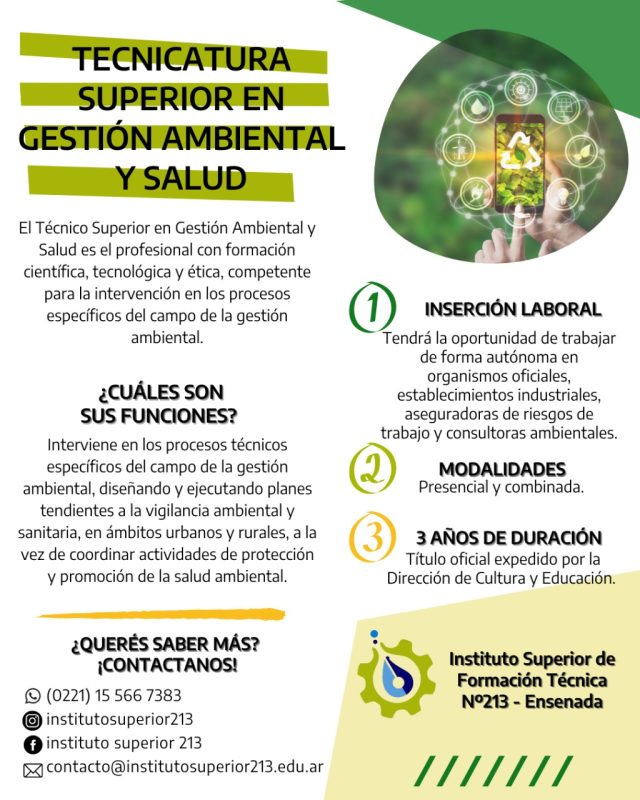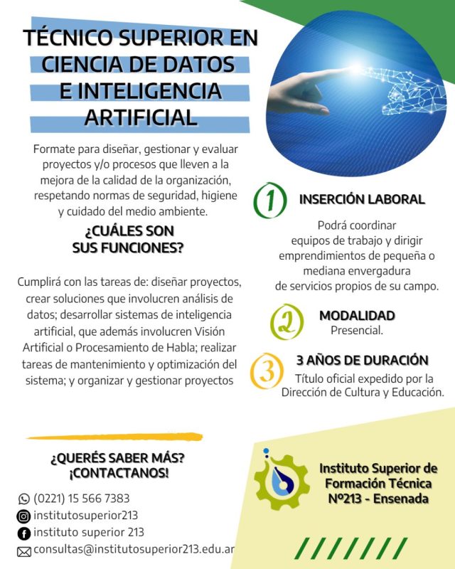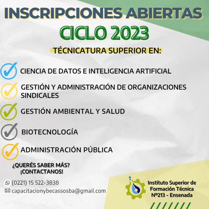 El Instituto Superior de Formación Técnica N° 213 de Ensenada abrió la inscripción para carreras terciarias con tecnicaturas superiores en modalidades combinadas presencial y virtual.