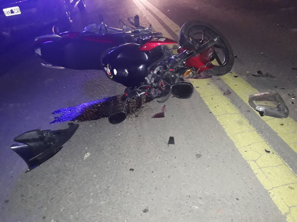 Por causas que se desconocen colisionaron una Motocicleta Yamaha YBR 125 cc., dominio HTX 003, su conductor resulto con traumatismos varios, debió ser asistido y trasladado por una ambulancia del Servicio de emergencias 911.