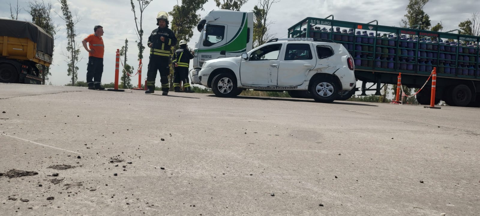En la tarde de hoy, a las 14:39, en el kilómetro 705 de la ruta 3, se produjo una colisión entre un camión Renault que transportaba garrafas, conducido por un hombre de 37 años (ileso), y una Renault Duster, guiada por una mujer de 50 años (ilesa), que iba acompañada por su hijo de 28 años (ileso).