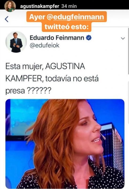 A mediados de 2018, Agustina Kämpfer y Eduardo Feinmann tuvieron un encontronazo en un ascensor, en el que el periodista le expresó sus deseos de verla presa.
