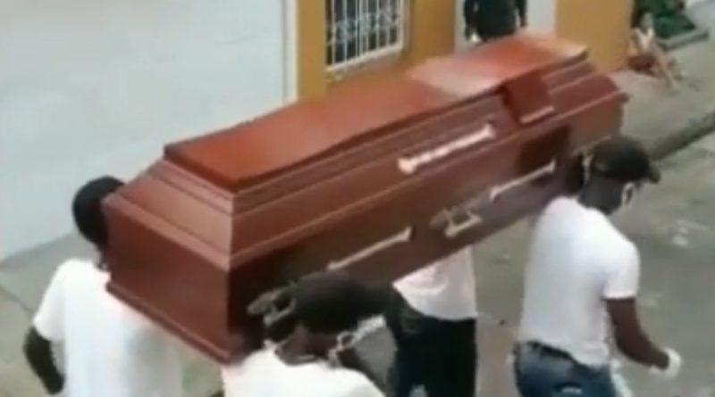 Ahora unos policías bailan con un ataúd en la calle imitando al famoso meme de los bailarines africanos