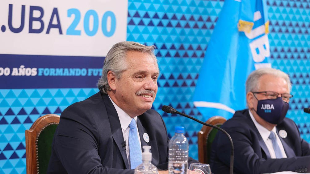 El presidente Alberto Fernández remarcó el “sentimiento de pertenencia” que genera la Universidad de Buenos Aires (UBA) y destacó “el respeto a la diversidad” que se vive en sus aulas, al encabezar el acto por el bicentenario de la casa de estudios.