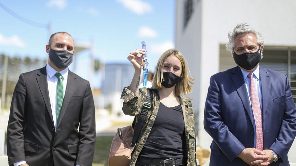 “Es una ironía porque entre Cristina (Fernández de Kirchner) y mi llegada al Gobierno hubo cuatro años y esas casas estaban hace cuatro años construidas. ¿Por qué no se entregaron? ¿Por qué condenaron a los destinatarios a pagar intereses que eran imposibles de pagar con los ingresos de cualquier argentino?”, se preguntó durante un discurso en el que, además, renovó sus elogios al ministro de Economía, Martín Guzmán.