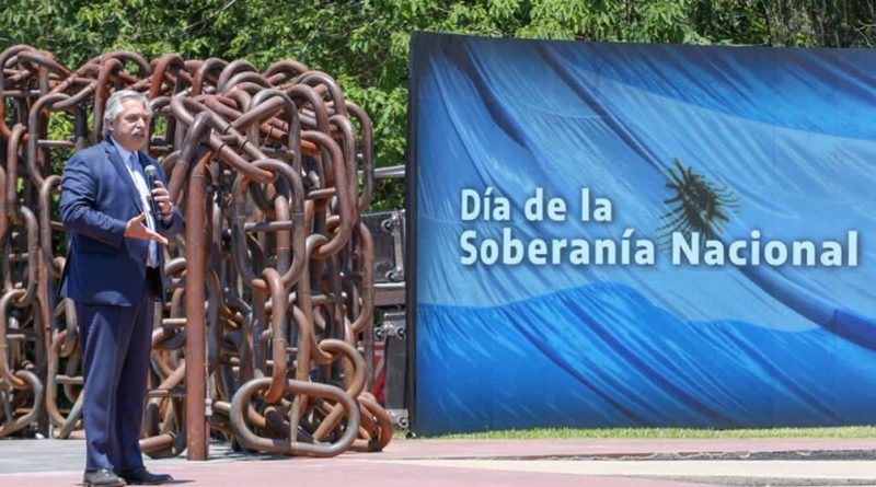 En un discurso, en el que la historia de los siglos XIX y XX aparecieron reiteradamente, Fernández señaló que “la soberanía hoy no es solamente la soberanía territorial, que obviamente la seguimos defendiendo y revindicando” y agregó que “en un día como hoy, no podemos olvidar los derechos soberanos que tenemos sobre las Islas Malvinas e islas del Atlántico Sur”.