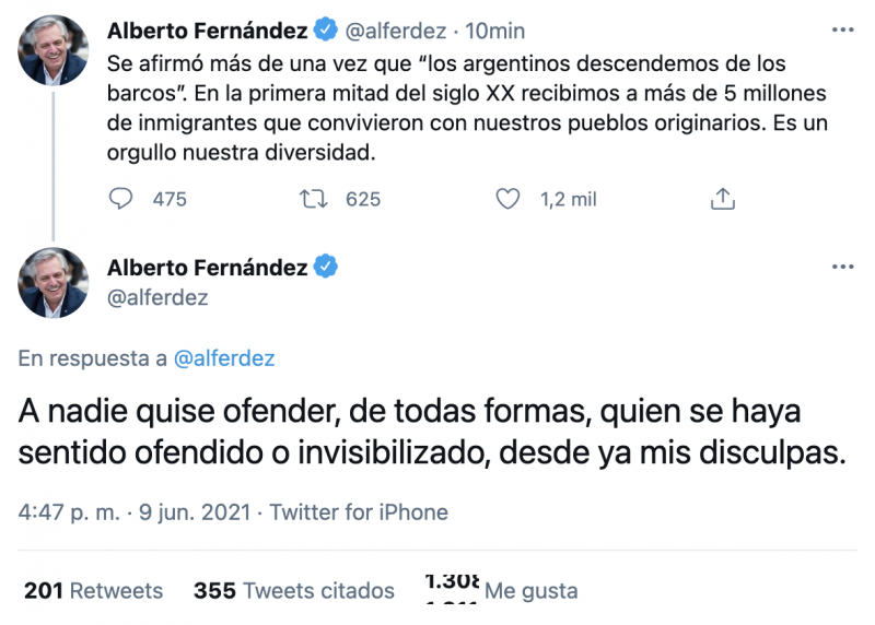 A raíz de esto, y la polémica que se generó, Alberto Fernández utilizó su cuenta de Twitter para pedir disculpas a quienes se hayan ofendido y aseguró que no fue su intención.