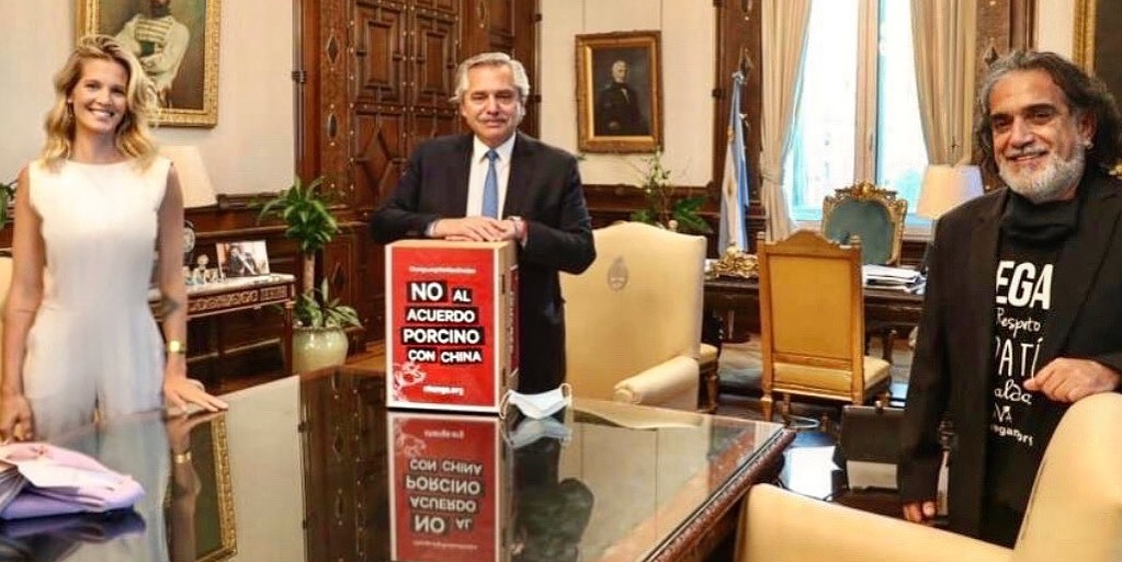 Durante la reunión, Fernández escuchó las principales críticas del movimiento con respecto al acuerdo con el país oriental. En el posteo que la organización realizó en redes sociales se especificó que también se informó al primer mandatario sobre el “clamor popular en rechazo de la instalación de las megafactorias de cerdos chinas en Argentinas”.