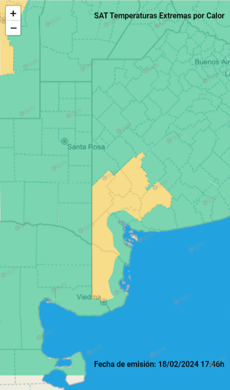 El SMN emitió además una alerta amarilla por calor extremo para las zonas bajas de Belgrano y de Juan Manuel de Pueyrredón, en San Luis.