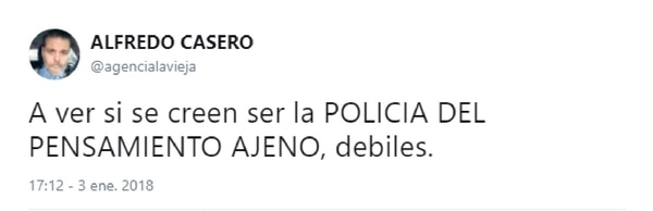“Guarda con lo que decís que viene policía del pensamiento. Bueno o malo, pero no permitan que les saquen la libertad de decir lo que piensan, de ningún modo. La tolerancia es convivir con intolerantes y la injusticia es una monda corriente que debemos aceptar. A mí me duele la realidad, quien no la ve, se conforma fácil. ¿Para qué?”, fue el último mensaje que escribió Alfredo Casero este miércoles en su cuenta de Twitter. (Teleshow)