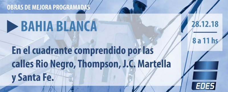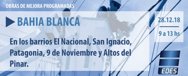 La empresa EDES anunció que dos cortes de energía afectarán a varios barrios de la ciudad, por tareas de mantenimiento y mejoras.