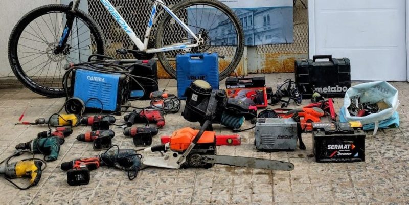 En el lugar se secuestraron herramientas de mano, una bomba de agua, una bicicleta rodado 29 marca Gribom, taladros, destornilladores eléctricos, amoladoras, rotomartillos, una soldadora, llaves de mano, y otros elementos de construcción. También se recuperó una puerta de chapa denunciada como robada en julio por un vecino del barrio Noroeste.