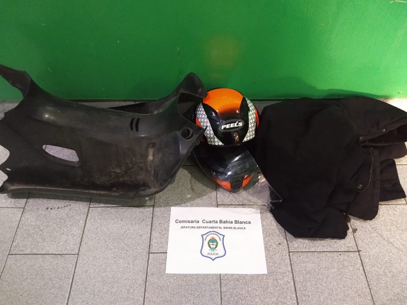 En el allanamiento, los uniformados secuestraron una motocicleta negra, un plástico cubre piernas, una campera y un casco con visor rebatible de color oscuro.