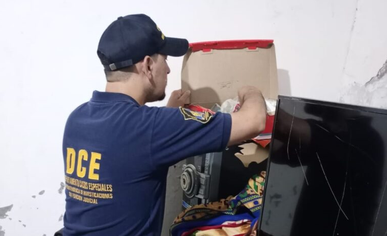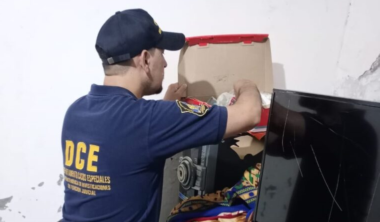 El procedimiento fue concretado por personal de la División Casos Especiales, quienes tenían a su cargo realizar un examen visual de teléfonos o cualquier elemento tecnológico que pudiera haber en el lugar.