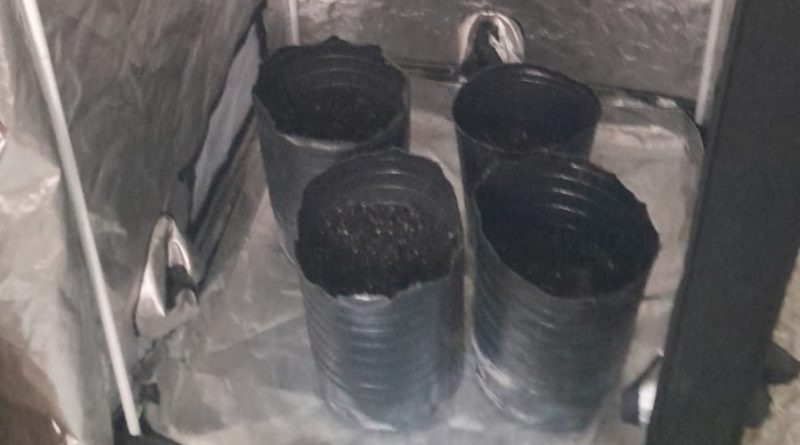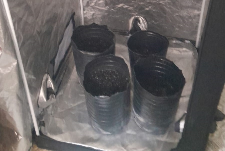 Durante la intervención, se efectuó el secuestro de dos teléfonos celulares, dos frascos que contenían cogollos de marihuana, un sistema de cultivo tipo indoor y cuatro plantines de marihuana.
