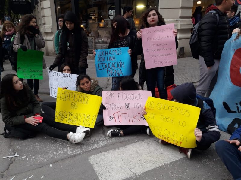 Un grupo de estudiantes del exColegio Nacional cortaron el tránsito en Sarmiento, entre Mitre y Zelarrayán, para reclamar mejoras edilicias en el edificio del establecimiento escolar.