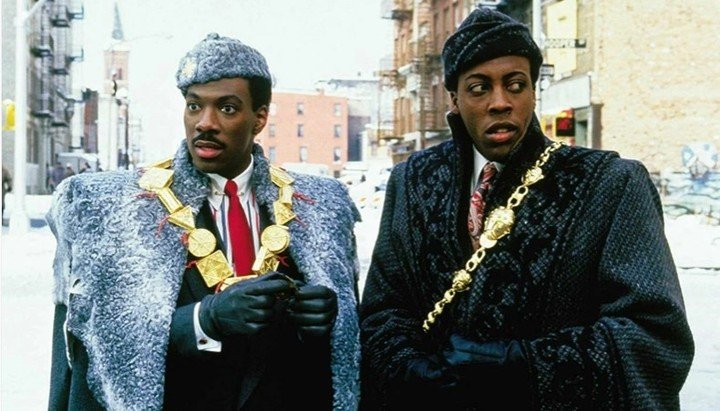 Eddie Murphy como el Príncipe Akeem y Arsenio Hall, su fiel ladero, en la película original.