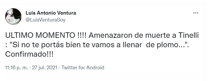 No es la primera vez que el conductor atraviesa una situación así, ya que en abril tanto él como sus hijos habían recibido amenazas de muerte en Whatsapp y redes sociales. “Cuánta locura, cuánta agresión. Qué momento difícil de odio estamos viviendo. Me amenazan vía redes sociales y WhatsApp, amenazan a mis hijos. Y todo esto por resultados futbolísticos (sí, por eso). Parece descabellado, pero es así”, había escrito en su momento.