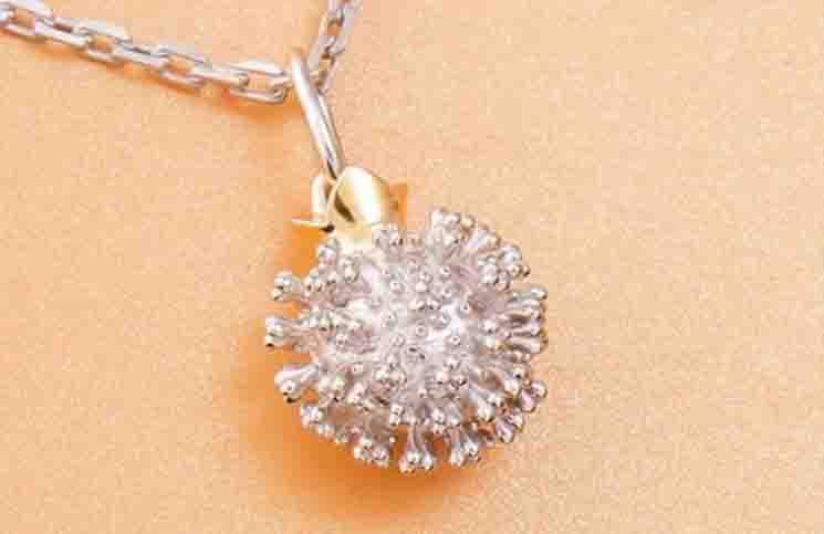 Lo cierto es que este dije con forma de Covid 19 no resultó indiferente a los consumidores. Lo creó una joyería en la ciudad Kostroma (Rusia), que logró su cometido de llamar la atención con esta creación.