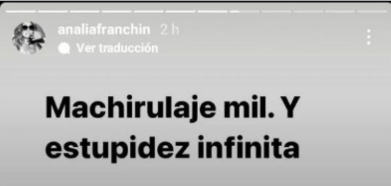 Por su parte, luego de enterarse de este cruce virtual, Analía Franchín opinó sin filtros: “Machirulaje mil y estupidez infinita”.