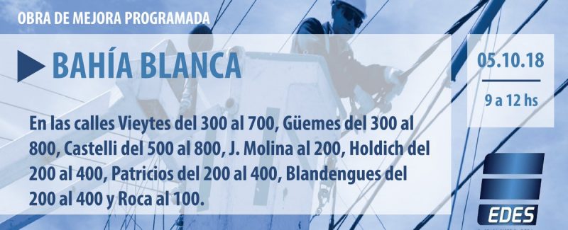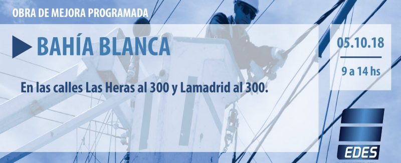 La empresa EDES anunció cinco cortes de energía para este viernes 5 de octubre para varias calles de la ciudad, por tareas de mantenimiento y mejoras.