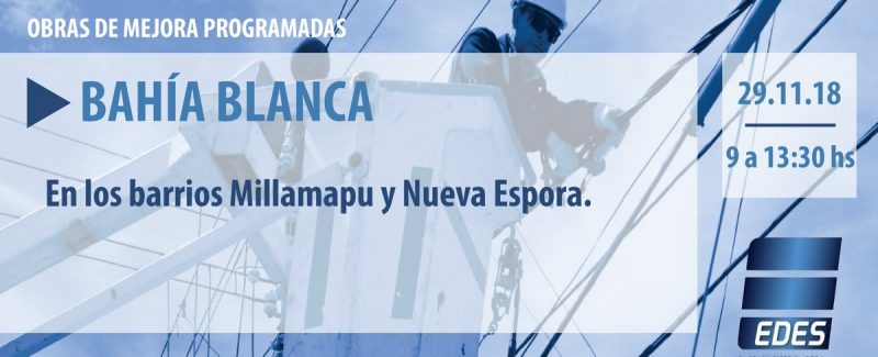 La empresa EDES anunció varios cortes de energía para el jueves 29 de noviembre en Bahía Blanca, por tareas de mejoras y mantenimiento.
