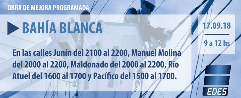 La empresa EDES anunció cortes de energía para hoy en diversos sectores de la ciudad por tareas de mantenimiento y mejoras.
