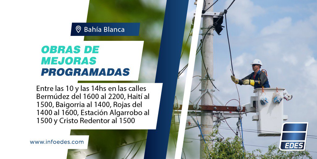 La empresa EDES anunció varios cortes de energía para este viernes, por tareas de mejoras y mantenimiento.
