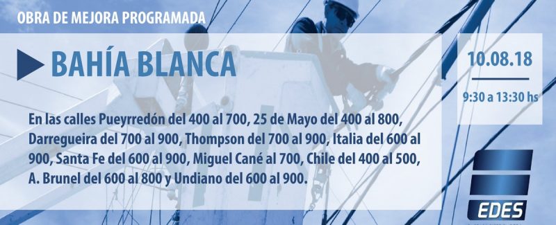 Anuncian cortes de energía por obras de mejoras para el viernes 10 de agosto