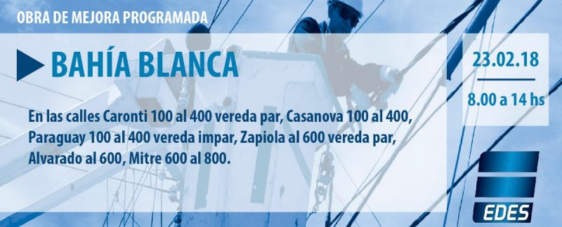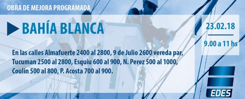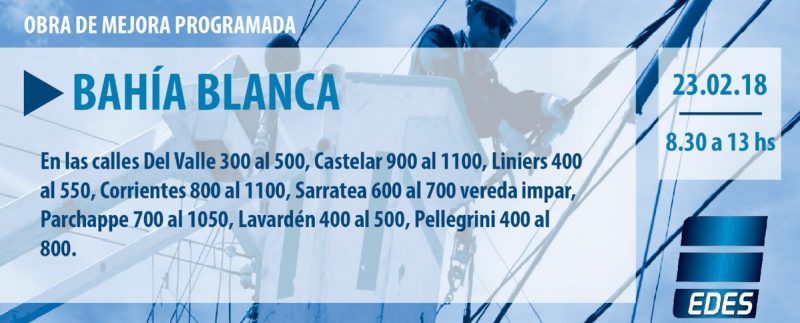 Locales Anuncian cortes de energía por obras para el viernes 23 22 febrero, 2018 De La Bahía Noticias Comentarios