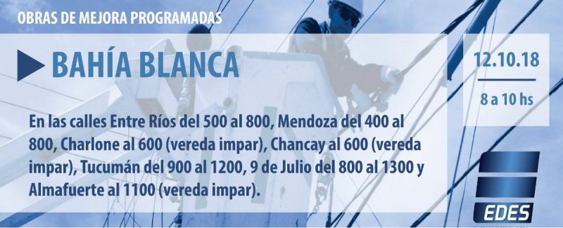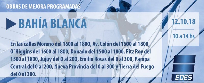 La empresa EDES anunció cuatro cortes de energía para este viernes 12 de octubre por tareas de mejoras y mantenimiento.