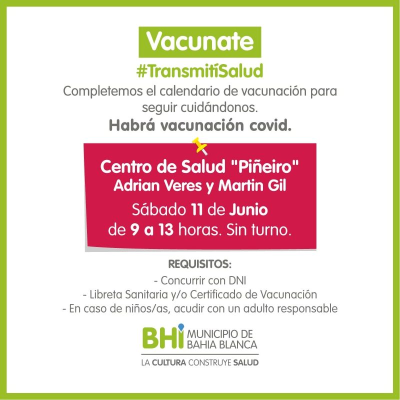 Mañana, de 9 a 13, se aplicarán vacunas de calendario, antigripales y de covid-19 en el Centro de Salud Piñeiro, ubicado en Adrián Veres y Martín Gil.