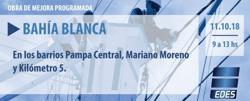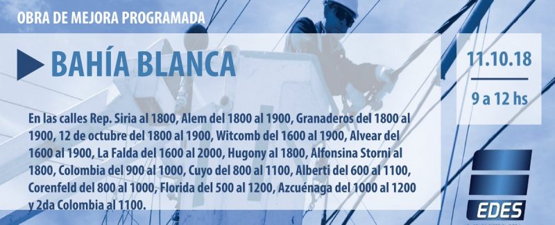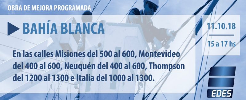 La empresa EDES anunció que este jueves 11 de octubre habrá ocho cortes de energía en la ciudad, por tareas de mejoras y mantenimiento.