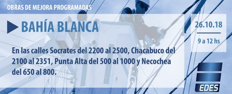 La empresa EDES anunció tres cortes de energía para este viernes 26 de octubre, por tareas de mejoras y mantenimiento.